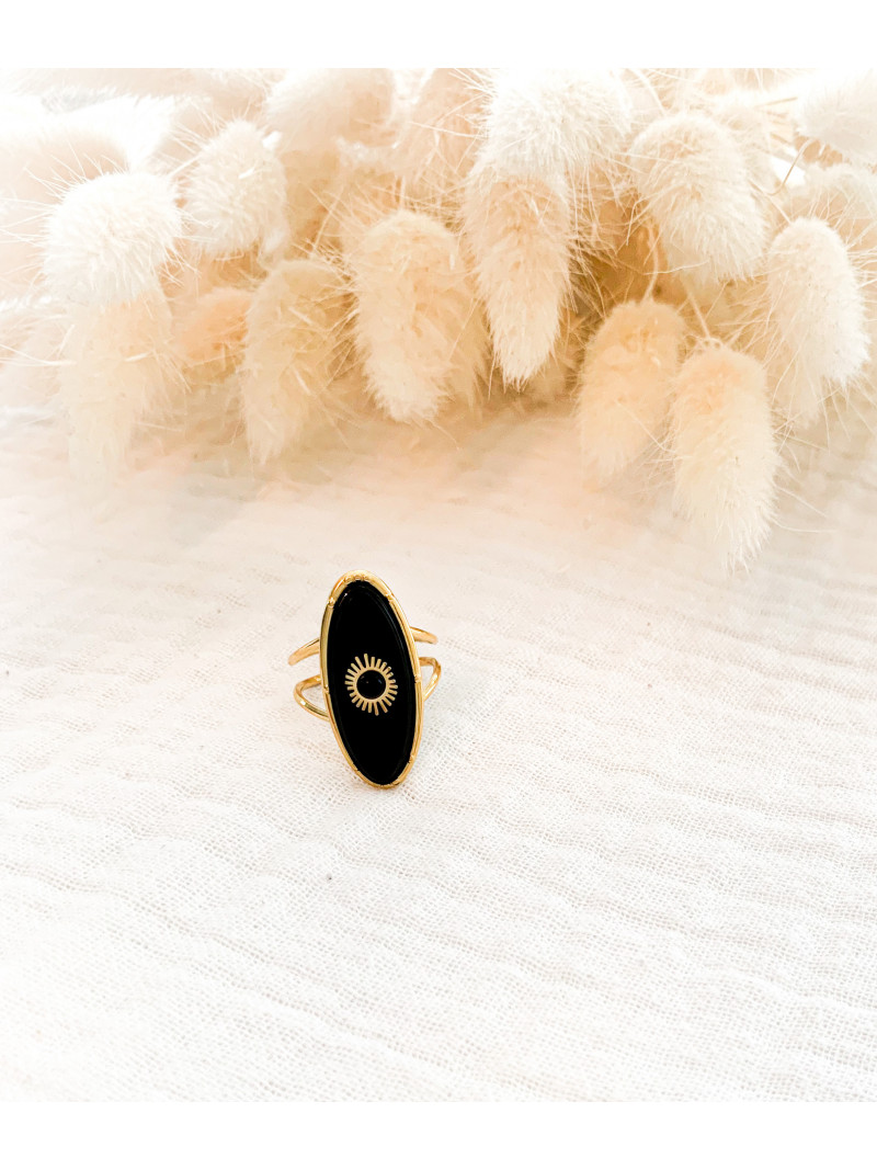 Jeanne - Bague Noire Acier Doré