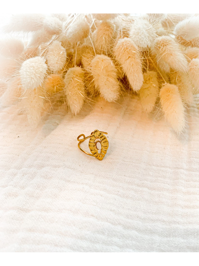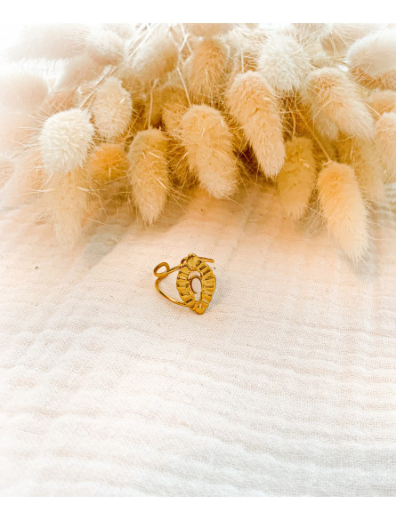 Anna - Bague Feuille Pierre Blanche Acier Doré