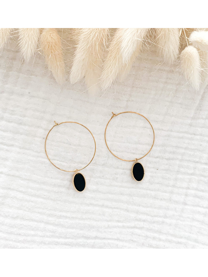 Lana - Créoles Pierres Noires Acier Doré