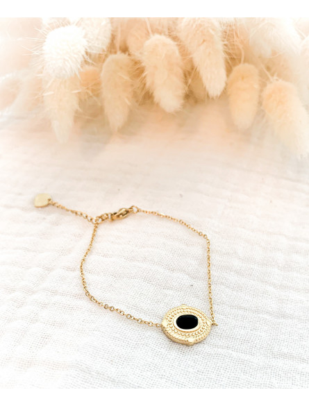 Angel - Bracelet Pierre Noire Acier Doré