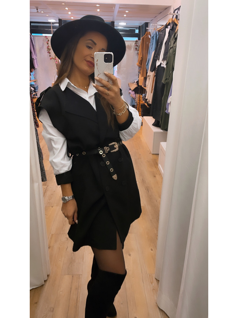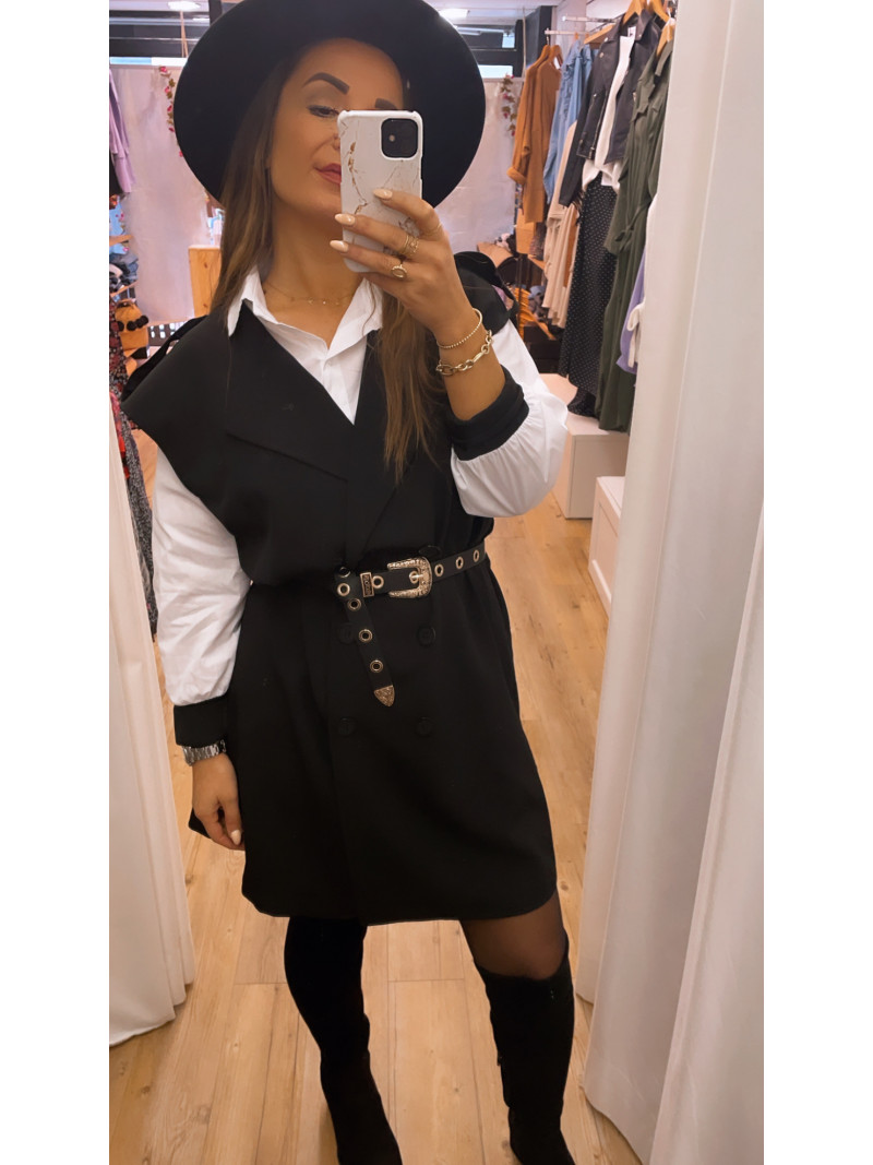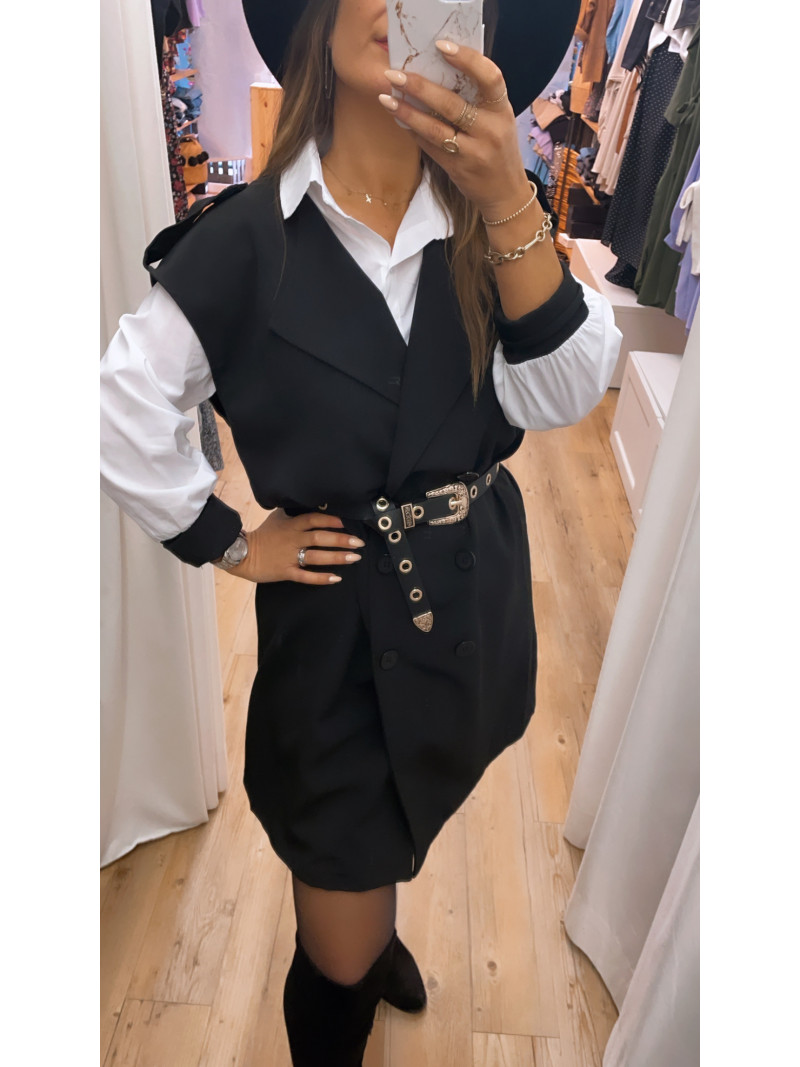 - Robe chemise Noire avec chemise blanche incorporée